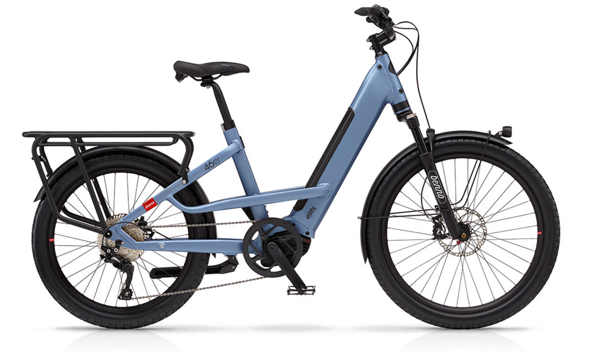 The 46er is the same length as a regular bike. And that's where all similarities end. We ditched convention and added capability. Enough to make any cargo bike sweat. And gave it a sporty ride and front suspension. This unequaled combination of ride and capability starts with unequal wheels. 26" in the front for extra comfort and control, and 24" in the back for strength and a lower center of gravity. All powered by the Bosch CX / Speed and a 500Wh intube battery. Born of true Etility Design, the 46er is reshaping the future of the ebike. For Benno Bikes and the industry.